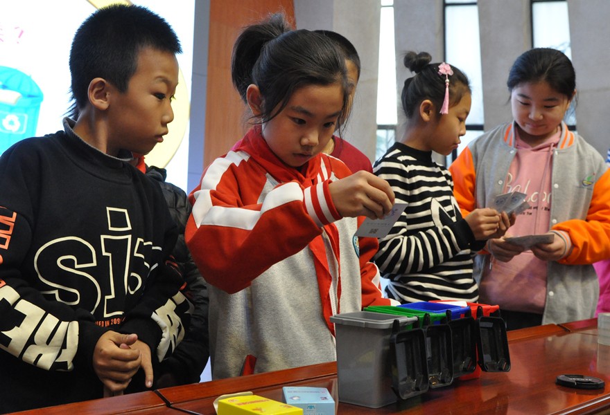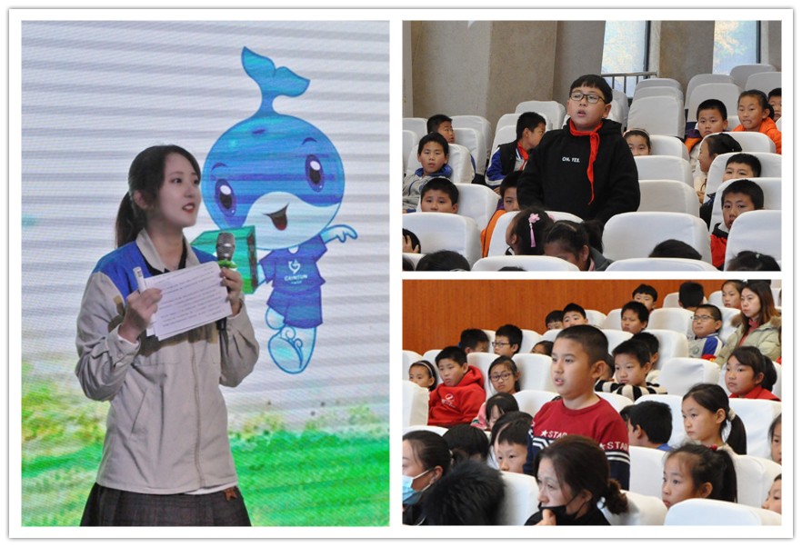 讲座中,讲解员通过故事的形式引导学生们了解为什么要垃圾分类,垃圾分类的意义和不分类会带来的危害等,随后同学们参与了垃圾分类的小游戏,通过将写有不同种类垃圾名称的卡片投入到相对应的四分类垃圾桶中,更加提高了学生对于垃圾分类的认识。