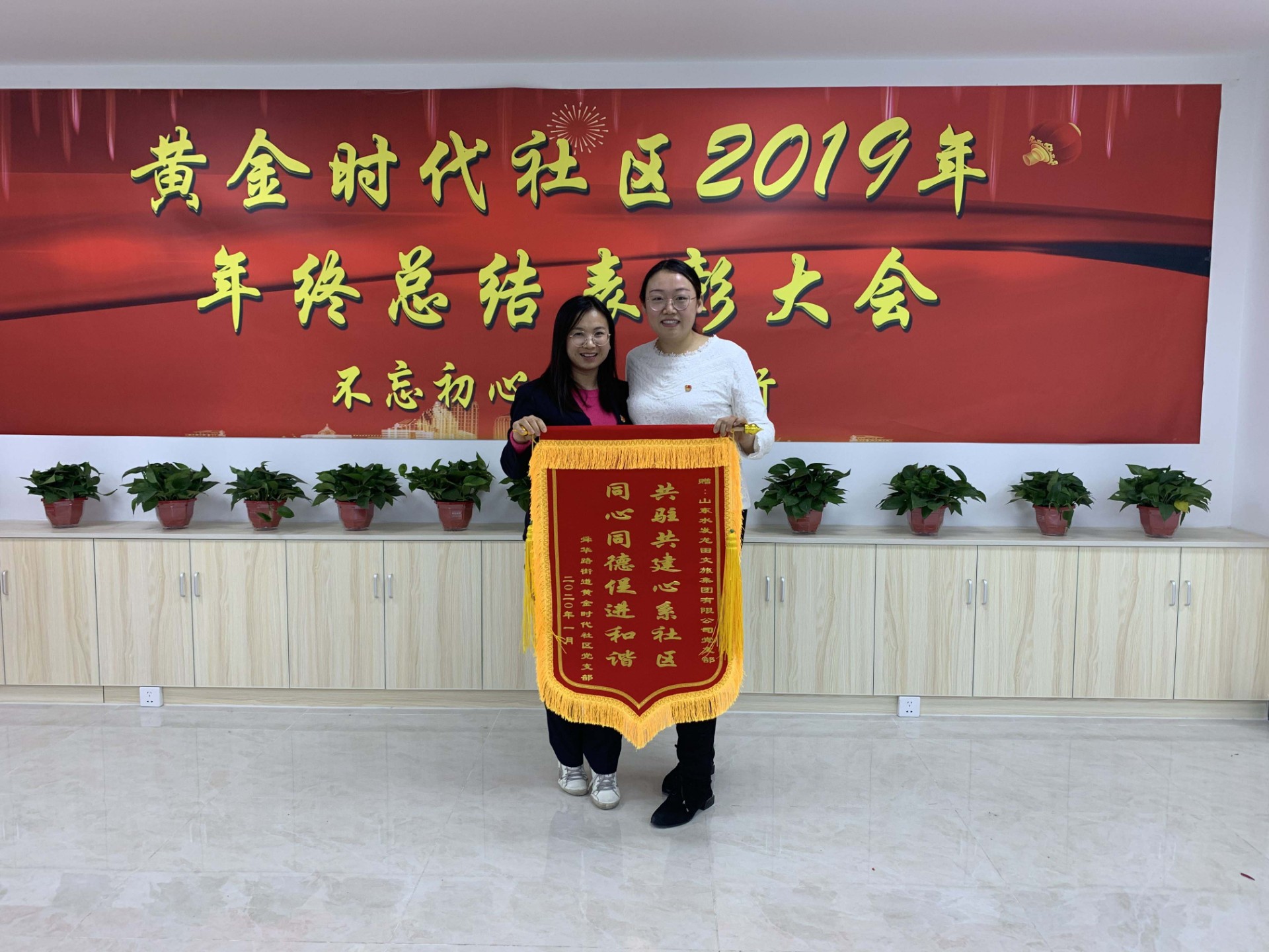 黄金时代社区向水发龙田党支部授予锦旗