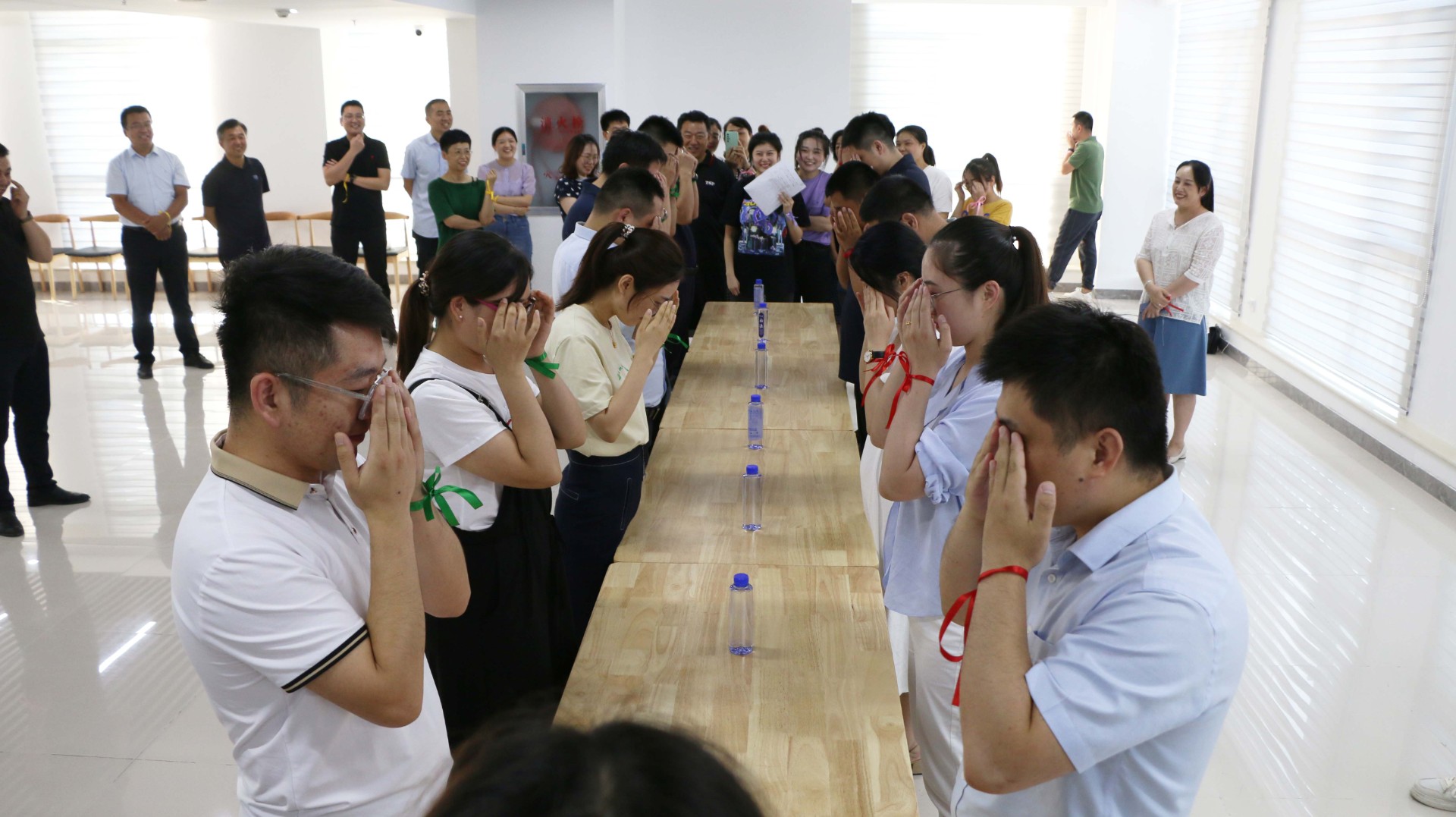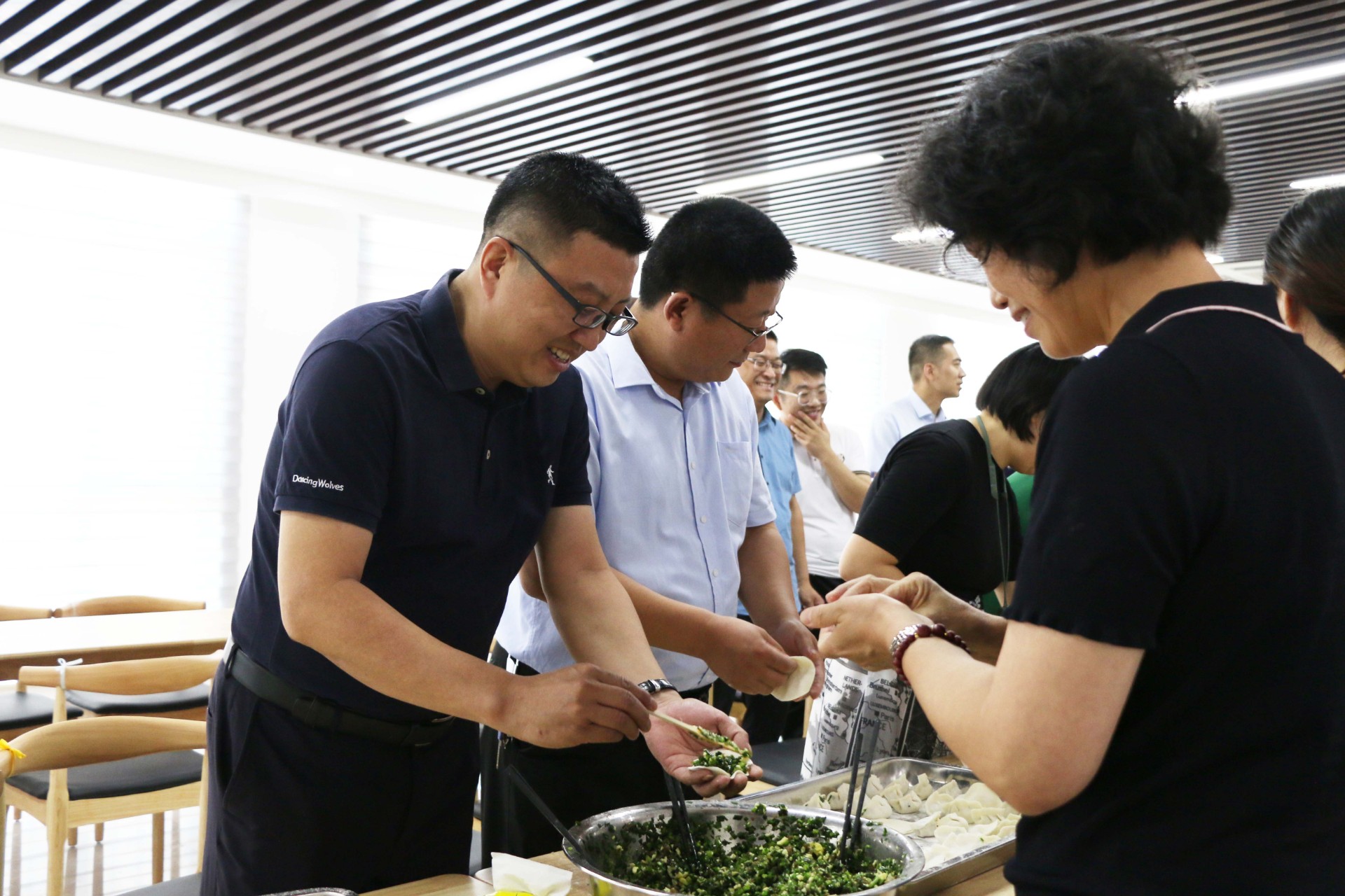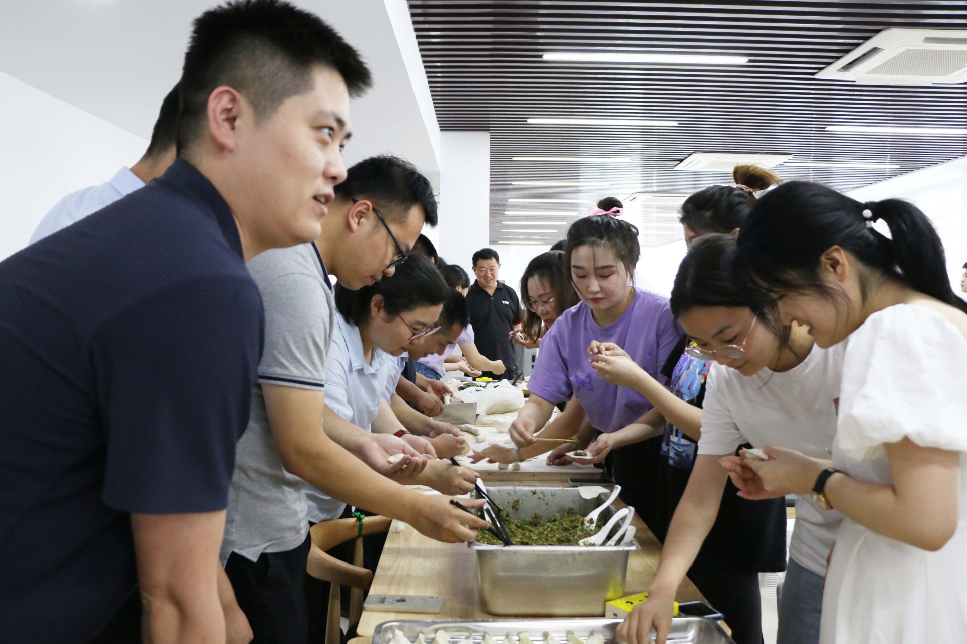 活动首先进行了包饺子、做烘焙活动,大伙儿在员工食堂各显身手,相互切磋包饺子技巧,每个人都忙得不亦乐乎。随后开展了团建小游戏,全体人员随机抽签组成6个队伍,并展示了自己的队伍口号,先后进行了抢水瓶、顶气球、盲眼喂糖等团建活动,各队伍成员同心传递、团结协作、铆足干劲,拼智慧、拼速度,展示了高度的专注力和高效的执行力,队员们快速融入,营造出和谐欢乐的团队氛围。 此次团建活动,既增强了员工的荣誉感和幸福感,也增强了团队的凝聚力和协作力,为水发生态这一新发展阶段注入了活力和动力,激励大家在今后的工作中以更高的工作热忱,以更优的工作状态,为集团高质量发展贡献力量。(马云飞 供稿)