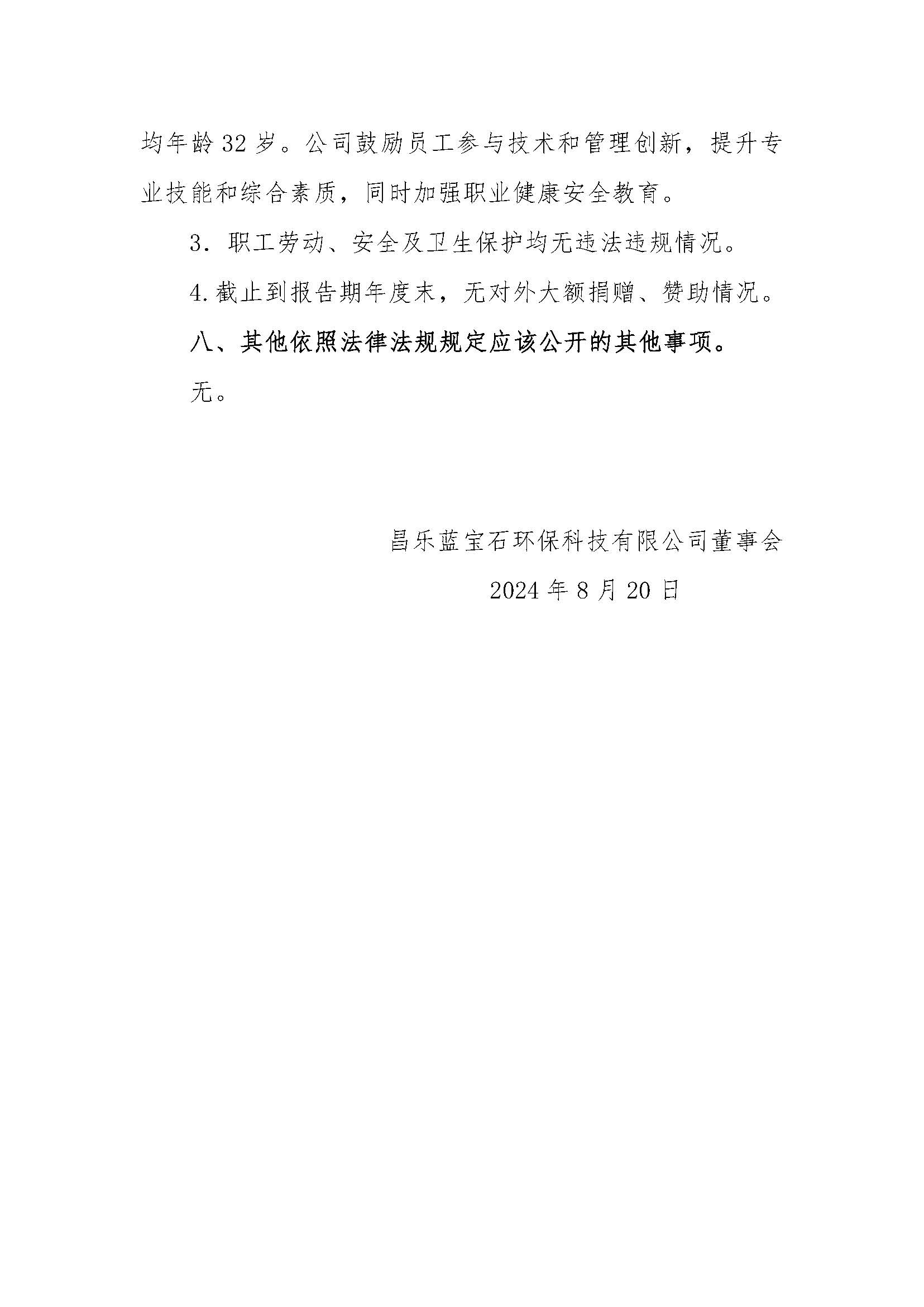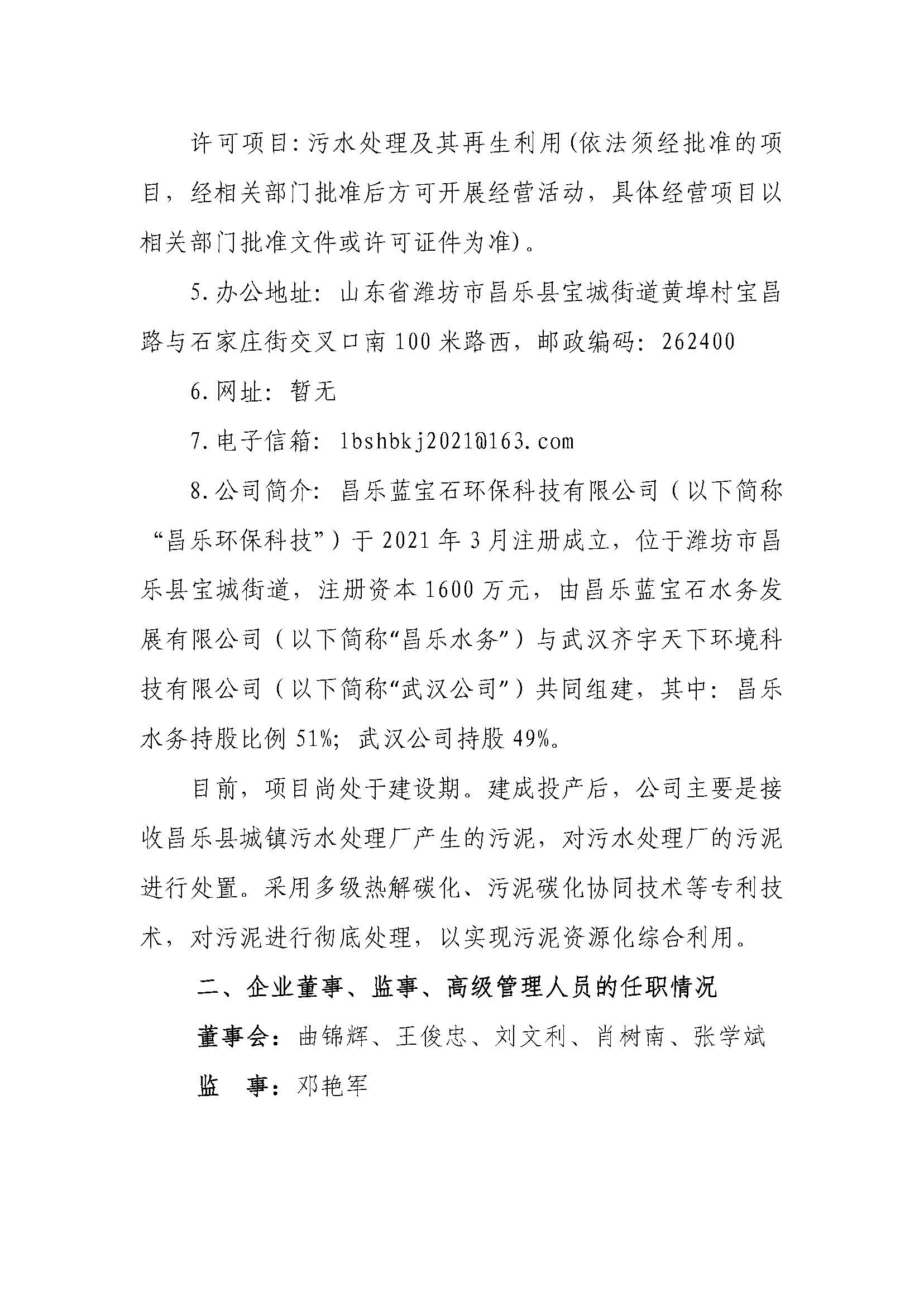 昌乐蓝宝石环保科技有限公司2023年度重大信息公告