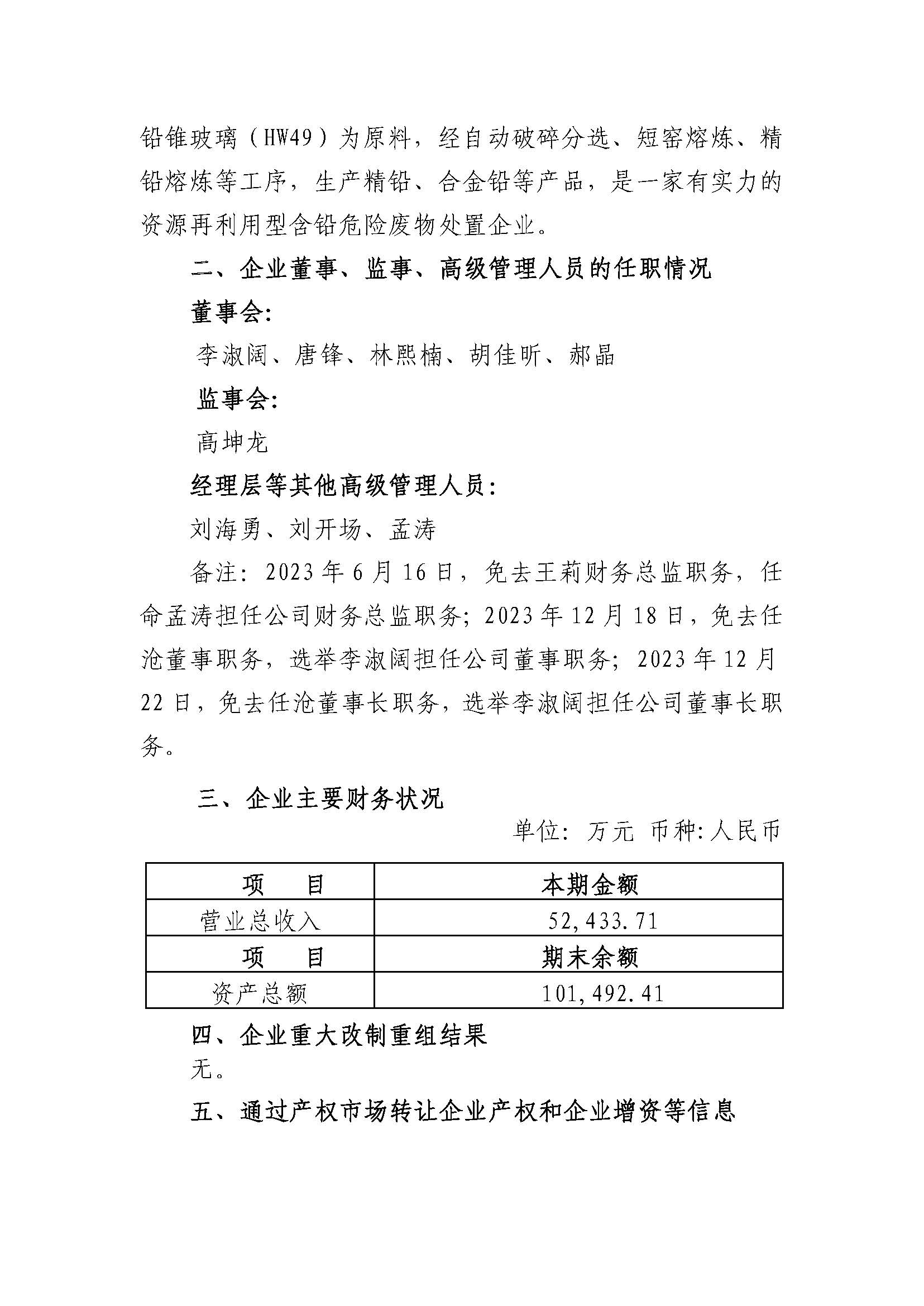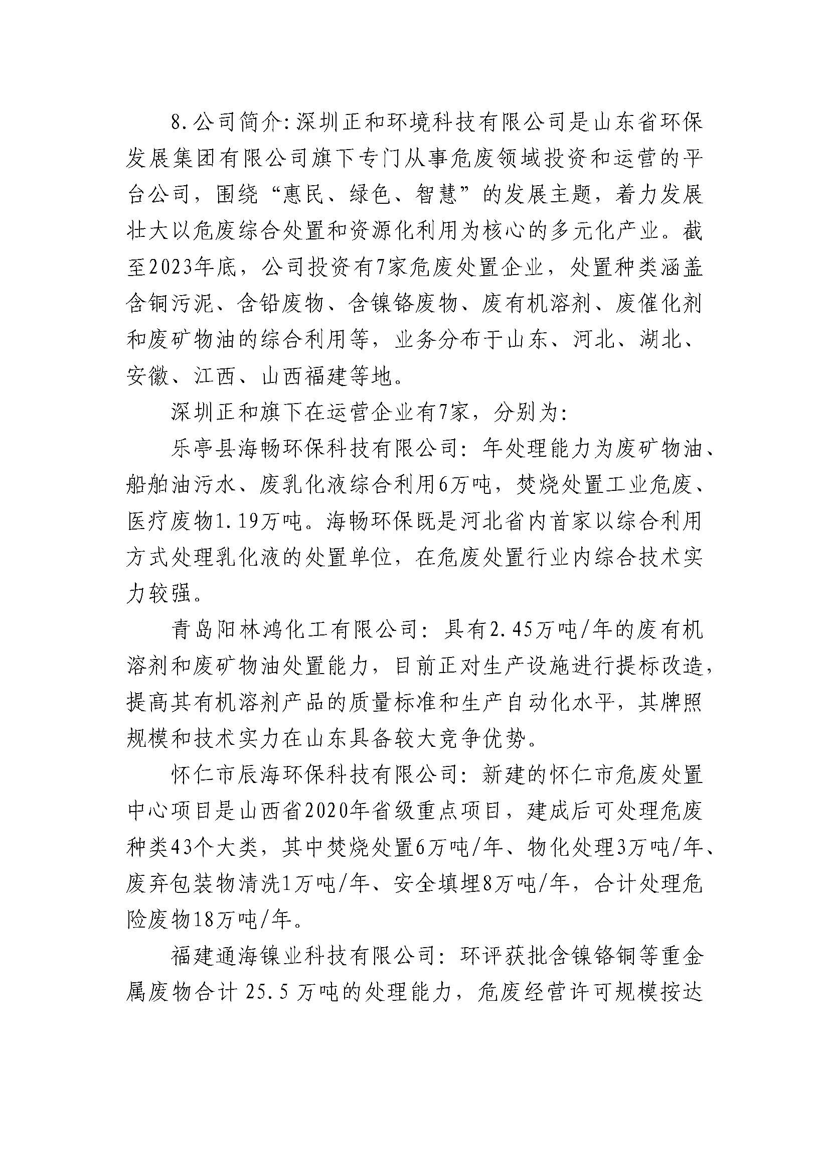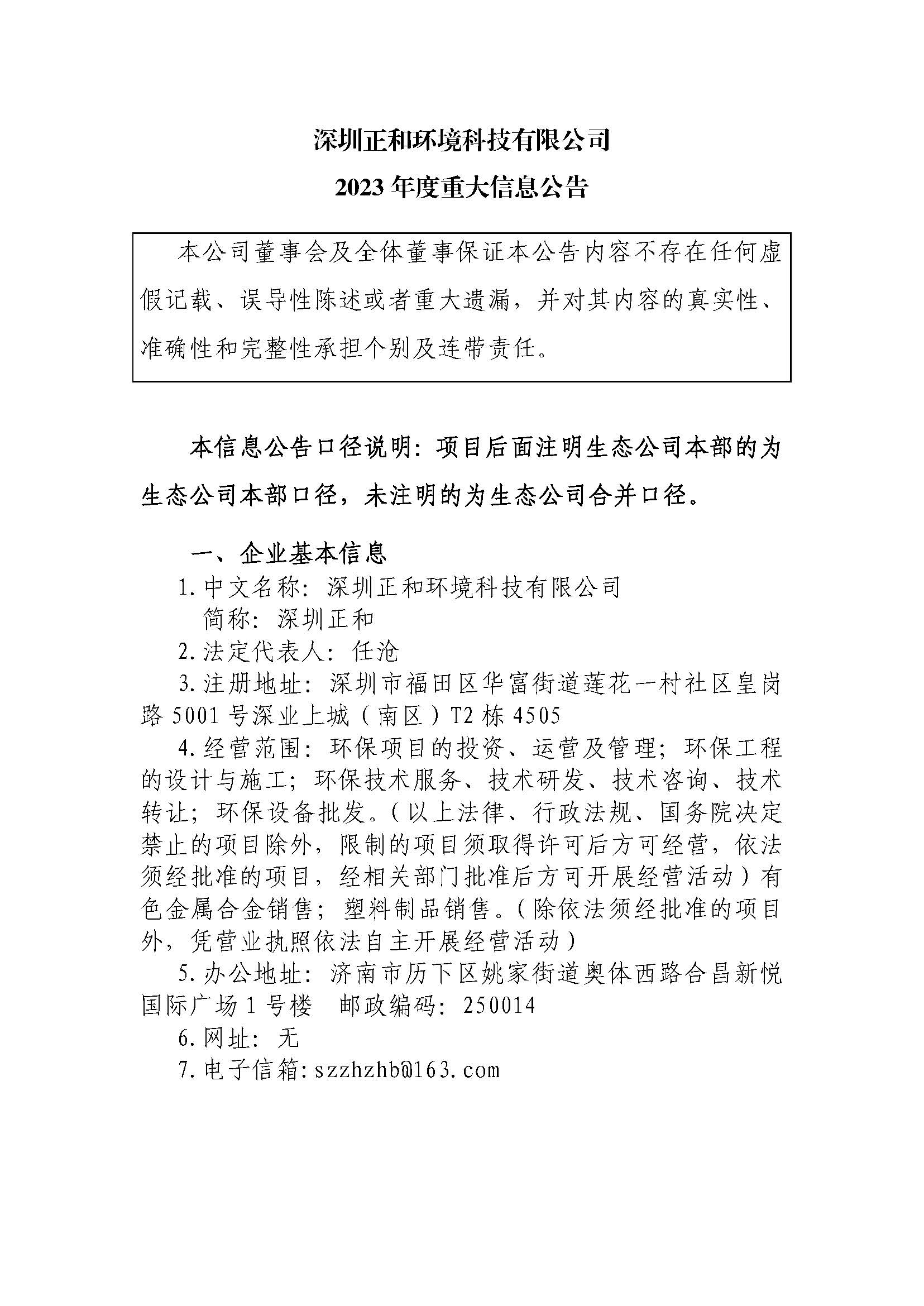 深圳正和环境科技有限公司2023年度重大信息公告