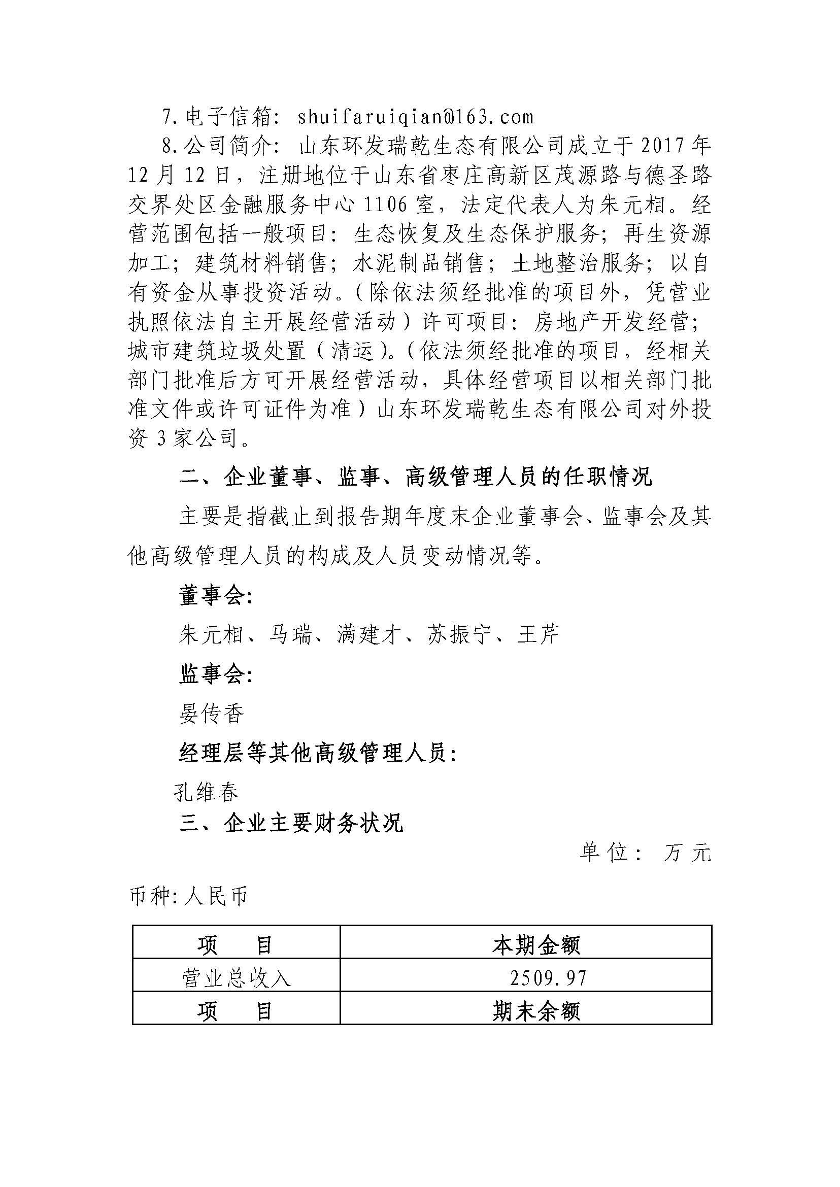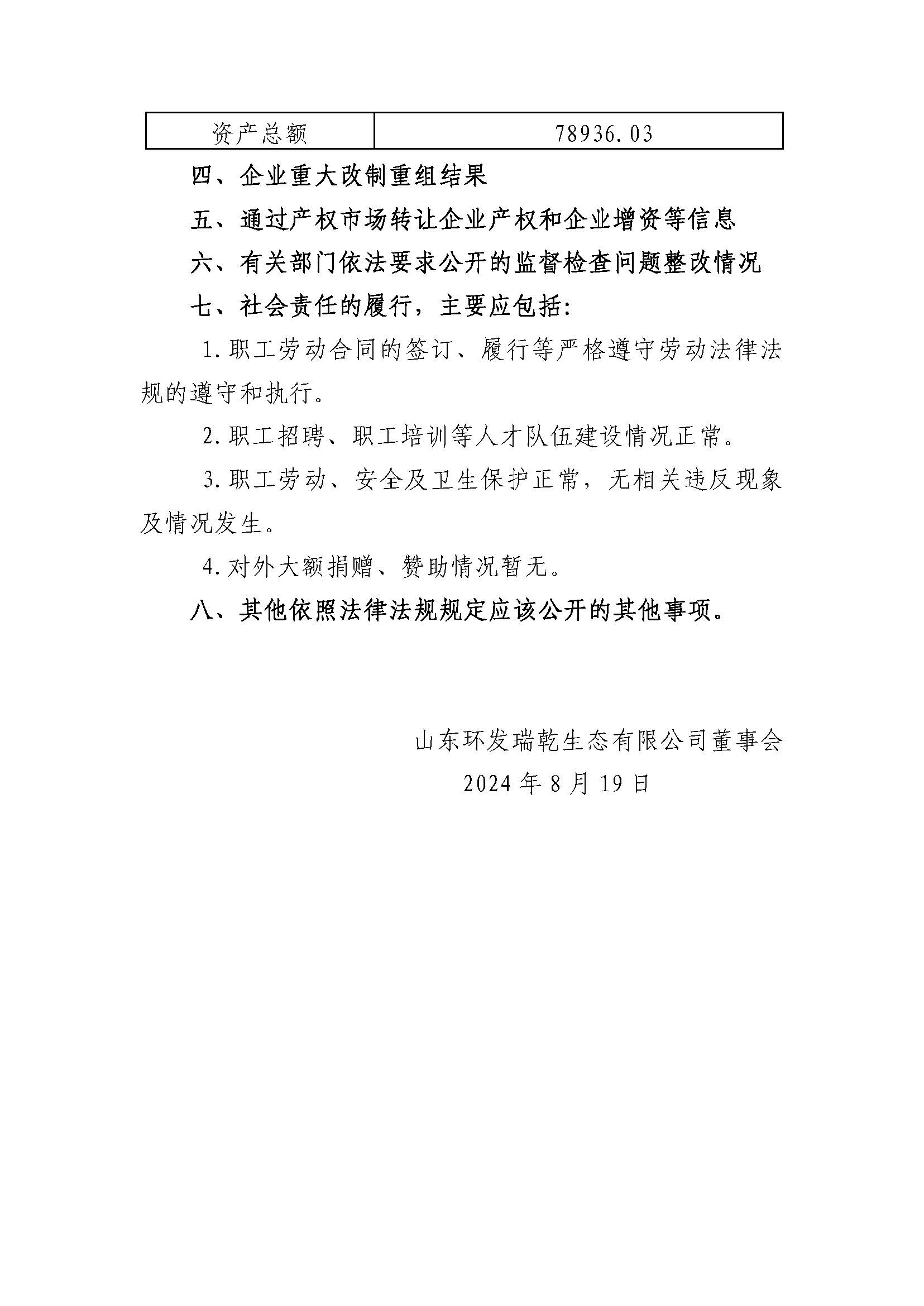 山东环发瑞乾生态有限公司2023年度重大信息公告