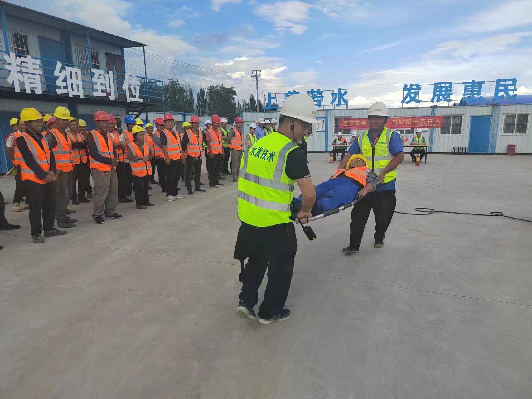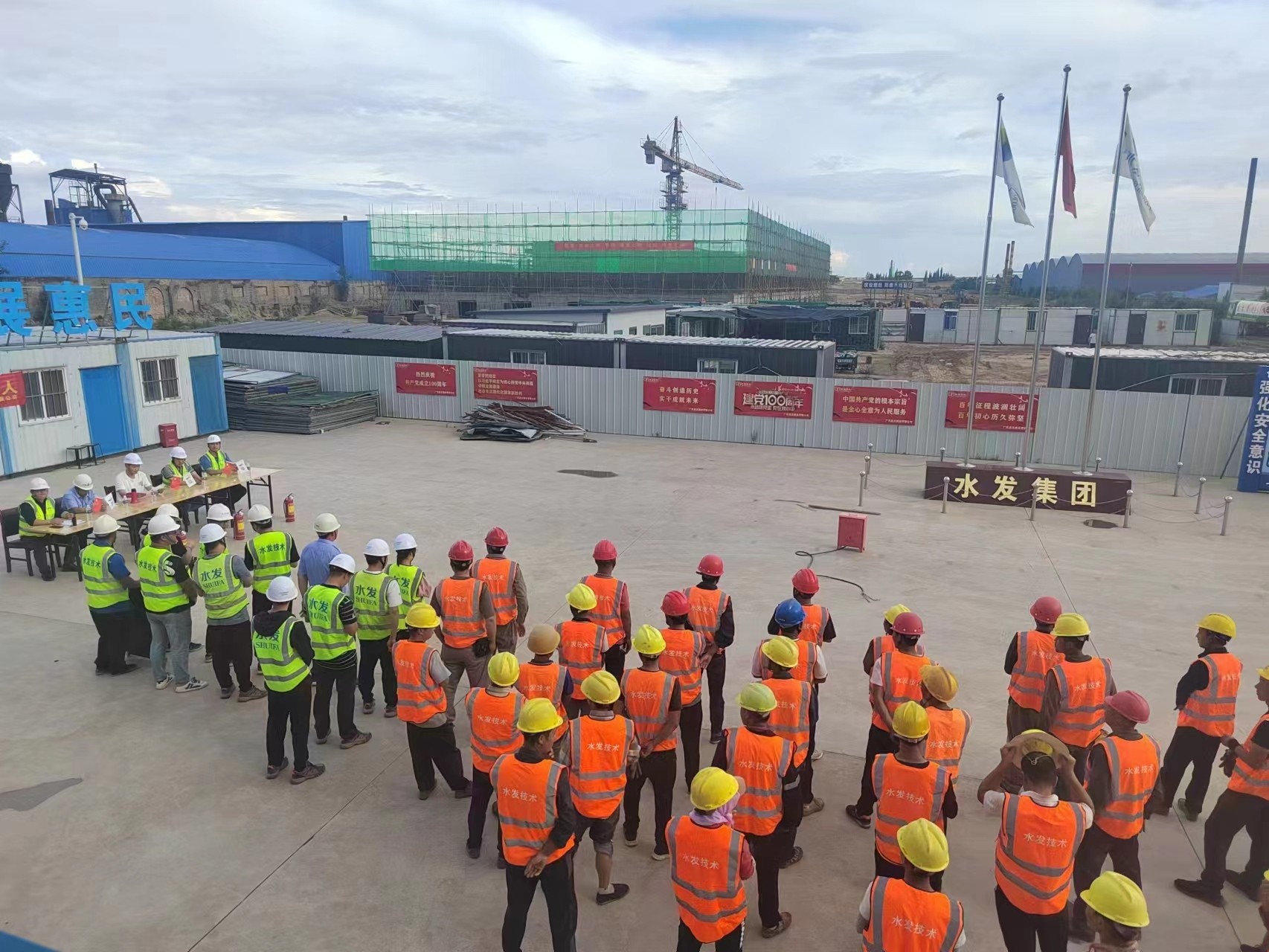 6月29日,怀仁市辰海环保科技有限公司新建固体废物综合处置中心项目部协同广东品正建业有限公司、济南市建设监理有限公司组织开展了消防知识培训、触电事故应急处置、中暑人员应急救援、消防演练等活动。